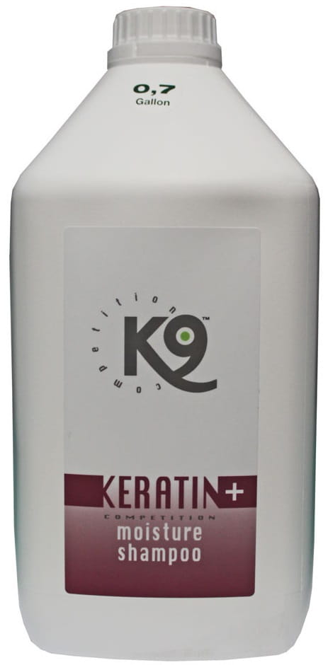 Łagodna formuła szamponu K9 Keratin+ Moisture z dodatkiem białka keratyny i D-panthenolu sprawi, że szata będzie bardzo odżywiona, jedwabista i z niesamowitym blaskiem. Idealny dla wszystkich rodzajów włosów. Leczy uszkodzone łodygi włosa. Zwiększa siłę i elastyczność włosa. Redukuje czas suszenia. Można rozcieńczać w stosunku 1:20.