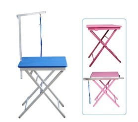 4Paws - składany stół, stolik wystawowy z wysięgnikiem i smyczą w komplecie, różowy blat z płyty mdf 60x45 cm